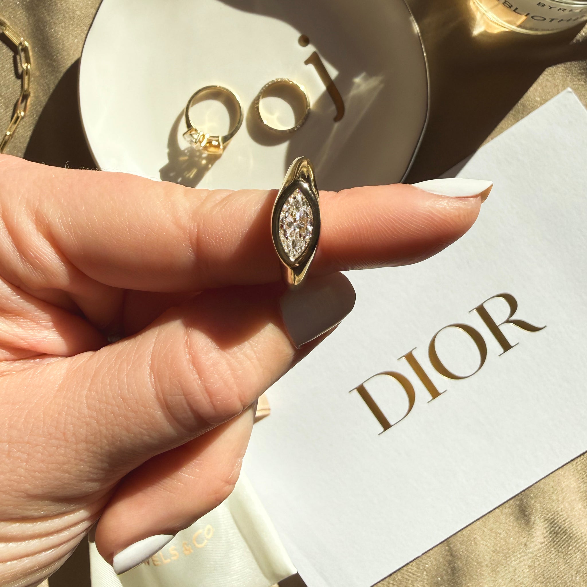 The set comprises two rings—a bold marquise Evil Eye ring and a radiant Sunbeams shadow band—that can be worn together or separately. The design symbolizes clarity, focus, and resilience while offering versatile styling options from bold to understated.