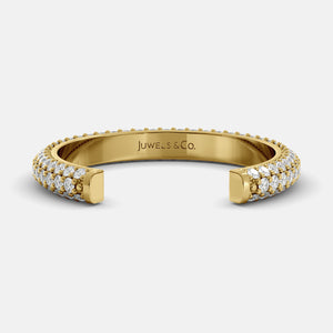 Jeder Forevermore-Ring von Juwels & Co. ist eine Hommage an das ewige Band lebenslanger Liebe und Treue. Dieser atemberaubende 3-reihige Halb-Ewigkeits-Diamant-Ehering ist der perfekte Weg, Ihre Liebe zu feiern. Dieses aus 14-karätigem Gelb-, Weiß- oder Roségold gefertigte Band verfügt über drei Reihen runder Diamanten im Brillantschliff, die funkeln und glänzen. Die Diamanten sind in einer Pavé-Fassung gefasst, was ihnen eine durchgehende, fließende Optik verleiht.